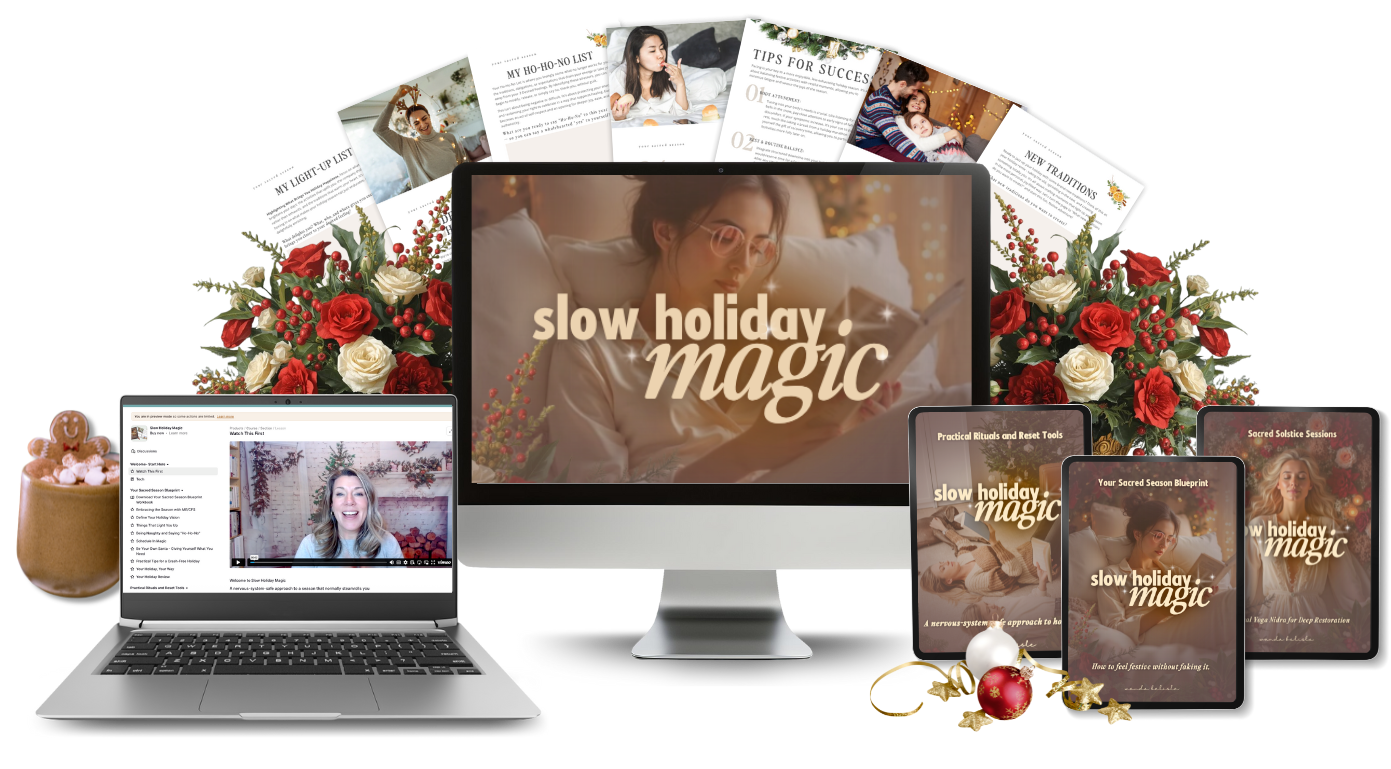 It’s a practical holiday plan: pacing, boundaries, nervous-system-aware rituals, and guided rest so the season is kinder to your body.